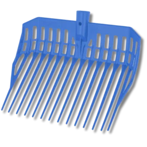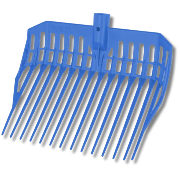 En børne greb er fremstillet af solide, holdbare materialer, der kan tåle daglig brug i stalden. Tænderne er robuste og formet, så de effektivt kan samle halm, gødning og strøelse uden at være skarpe eller farlige for små hænder. Grebet er designet, så sikkerheden er i fokus – og så børn trygt kan være med uden unødvendige risici.