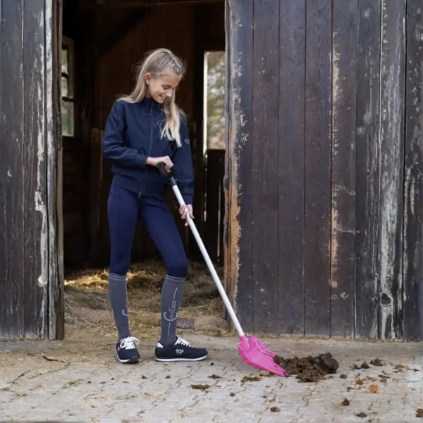En børne greb er det perfekte redskab til børn fra 5 år og opefter, der gerne vil hjælpe til i stalden, ved hestene eller i haven. Med sin lette konstruktion og tilpassede størrelse giver denne greb børn mulighed for at deltage i praktiske opgaver på en sikker og motiverende måde. Den er ideel til udmugning, flytning af halm, hø og strøelse – præcis som de voksne gør det.