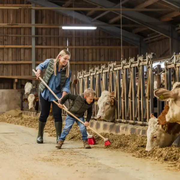 En børne kost kan med fordel kombineres med andre børneredskaber for at give barnet endnu flere muligheder for at deltage i forskellige opgaver. Mange børn synes det er ekstra motiverende, når de både kan feje, skovle og rydde op, og her kan en børne skovl være et oplagt supplement til at flytte jord eller strøelse. Til opgaver, hvor der skal løftes eller rives i let materiale, kan en børne greb gøre det endnu nemmere for barnet at hjælpe til som en del af det daglige stald- eller havearbejde.