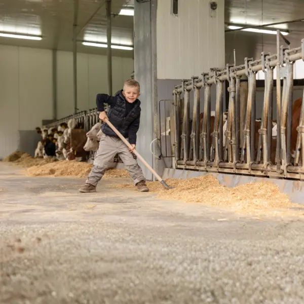 En børne skovl er et praktisk redskab, udviklet specielt til børn, der ønsker at hjælpe i stalden, ved dyrene eller i haven. Skovlen gør det muligt for børn at deltage i opgaver som udmugning, opsamling af strøelse samt skovling af jord og sand. Den er designet med børns behov i fokus, så de kan være en aktiv del af arbejdet på en tryg og motiverende måde.
