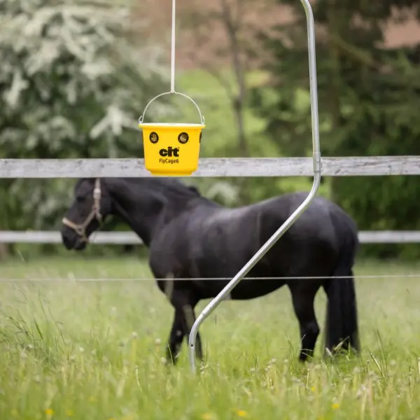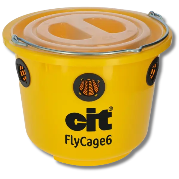 Den Cit fluefanger FlyCage6 er en ekstremt effektiv og rummelig fluefælde, designet til at bekæmpe flueplager i haver, på græsningsarealer, campingpladser og lignende udendørs områder. Med en kapacitet på 6 liter vand og 750 g FlyCage flue-lokkemiddel tiltrækker og fanger den op til 90 % af fluerne i nærområdet.