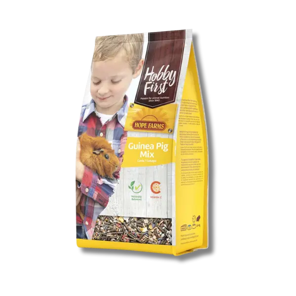 Marsvin kan ikke selv producere C-vitamin, hvilket gør det nødvendigt at tilføje det gennem kosten. Hobby First Guinea Pig Mix indeholder 400 mg C-vitamin pr. kg, hvilket hjælper med at forebygge mangelsymptomer såsom træthed, tandproblemer og dårlig pels. Regelmæssig fodring med denne blanding understøtter immunforsvaret og bidrager til et sundt og aktivt marsvin.