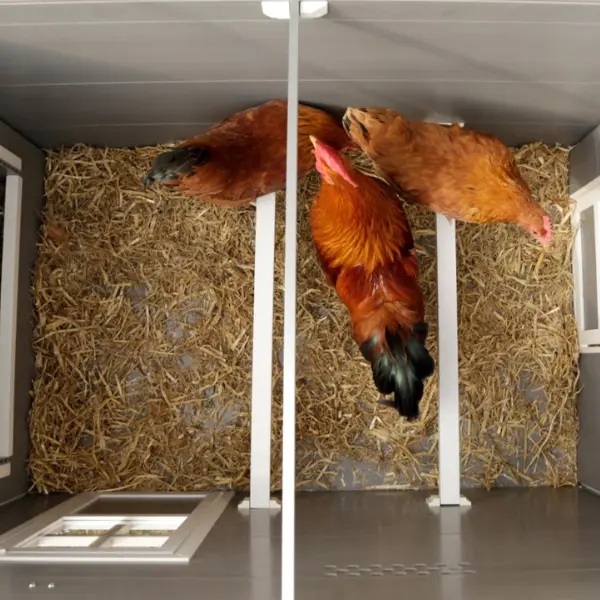 Hønsehuset i Eco-Plast tilbyder et sundt og komfortabelt miljø til dine høns. Det forhøjede design med god luftgennemstrømning via det justerbare skydevindue sikrer optimal ventilation året rundt. Med målene 137 x 73 cm får dine høns et gulvareal på ca. 1 m², hvilket giver god plads til op til 4-8 høns afhængig af race og størrelse. De to siddepinde giver hønsene mulighed for at hvile trygt og naturligt, og de separate døre gør det let at tilgå forskellige sektioner i huset uden at forstyrre hele flokken.
