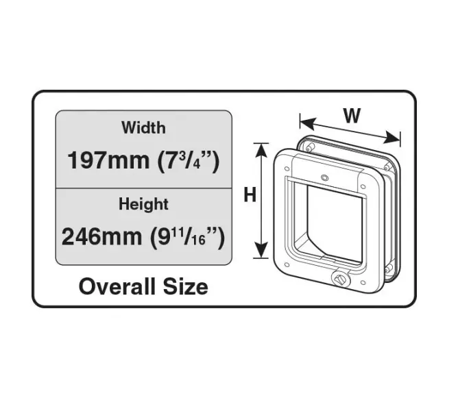 - Udvendige dør mål (B x H): 197 x 246 mm