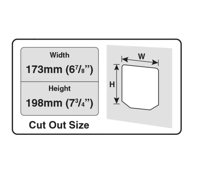 - Dørudskæringsmål (B x H): 173 x 198 mm