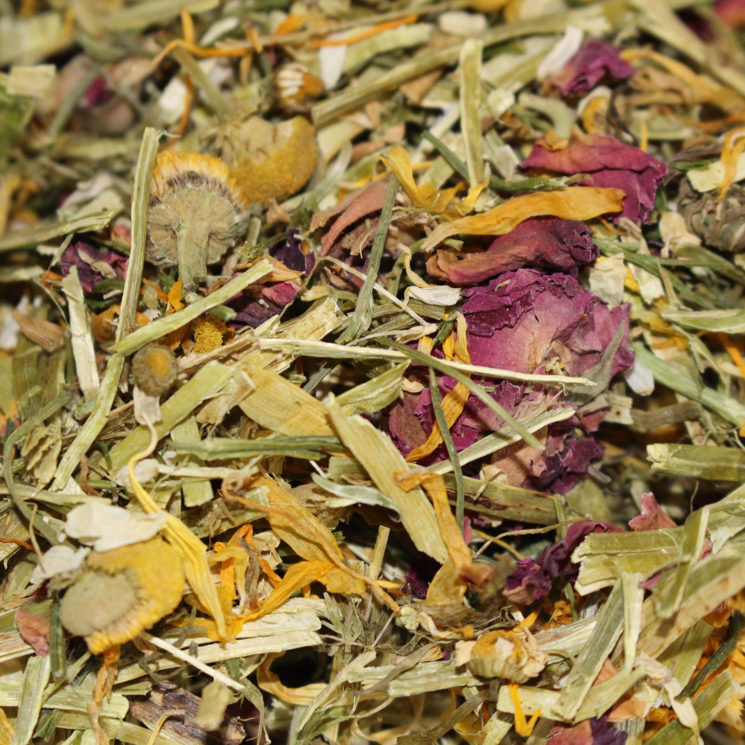 Blandingen har en skøn duft af blomster og får dit hø til at være mere attraktivt for dine gnavere og giver et dejligt indeklima i buret.